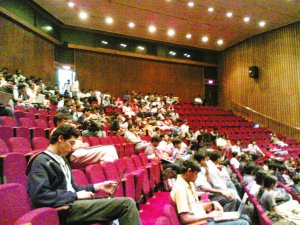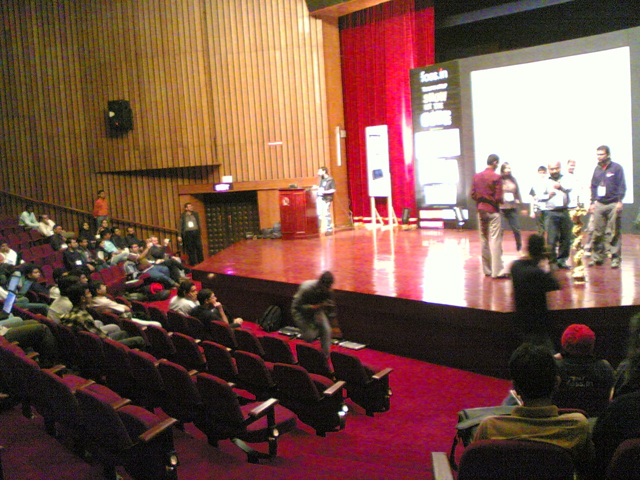 I waited to get my delegate card at the registration counter at FOSS.IN venue at Indian Institute of Science, Bangalore and went inside with the usual BMSCE gang – Krishna, Madhusudan and Santosh and . (Kavoor had come too, but in the other half of the day).