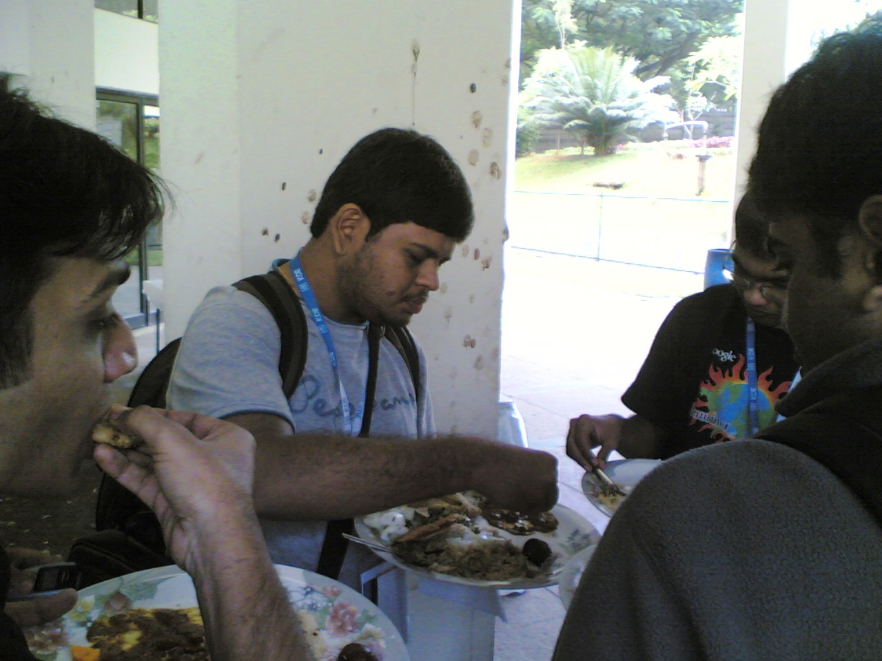 Oh, again I was late. But this time its the traffic to blame. And by the way, it was Krishna's Birthday today. Happy birthday again, Krishna. So, here's the story – Today was entirely different from yesterday. Yesterday, we were coding and fixing bugs, today was the display of the vibrant K Desktop Environment and some of its pillars – Phonon, Solid to name a few. Learnt a lot about KDE and Makefiles today, especially cmake. And yes, got a KDE T-shirt during the sessions, yippee !!! In the end, we had a beautiful song by Adrian and others “We are KDE …”, and the best of all, we got a book on Qt development; I was wanting to learn either gtk or Qt since a long time, now its easy, provided exams don't become a barrier. Returning back seemed a pain again, due to heavy traffic, but I read the book on the way, so it was comfortable. Couldn't take any photos today.
